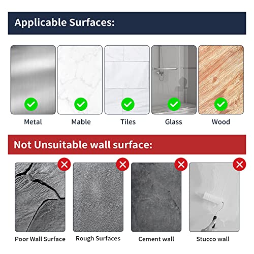 Facile da installare: è possibile utilizzare un forte adesivo per fissare il gancio a una parete liscia, senza lasciare segni, senza chiodi e con una facile installazione. Adatto per pareti, come piastrelle lisce, vetro smerigliato, vetro, marmo, pannelli di plastica, acciaio inossidabile, superficie verniciata, lavagne. Si prega di notare che queste pareti non sono adatte per pareti in stucco, cemento, mattoni, carta da parati.