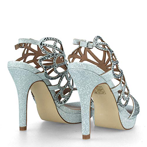 MENBUR 21246 ARCENO Sandalo Gioiello Elegante con Tacco 10 CM E Plateau 1,5 CM (Argento, Numeric_35)