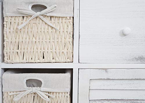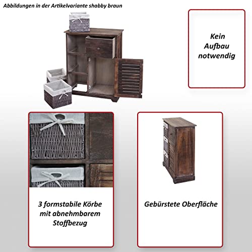 Mendler Cassettiera con 3 ceste Shabby Vintage HWC-H21 Legno paulonia Bianco
