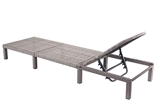 Mendler Lettino da Esterno polyrattan HWC-A51 Regolabile Basic Grigio Cuscino Grigio Scuro