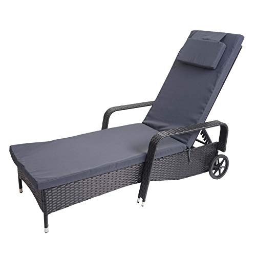 Mendler Lettino Regolabile da Esterno Carrara Alluminio polyrattan Antracite con Cuscino Grigio