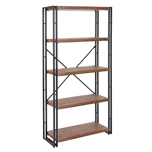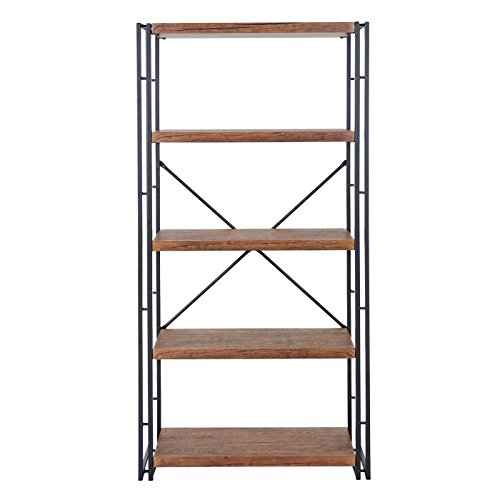 Mendler Libreria scaffale HWC-A27 Effetto 3D MDF 5 Ripiani 80x165cm Color Rovere Scuro