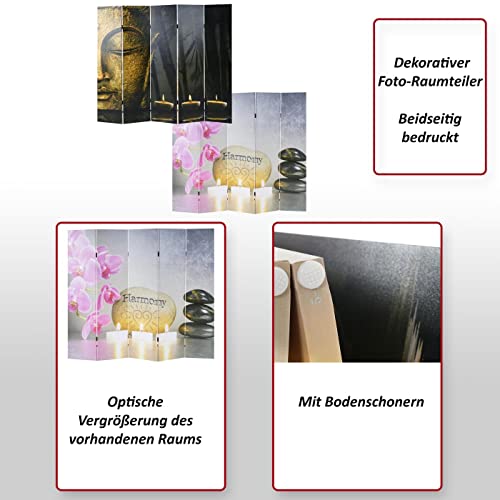 Mendler Paravento divisore Doppia Immagine 5 Pannelli 180x200cm Buddha