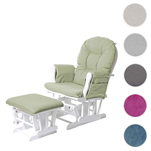 Mendler Poltrona a Dondolo HWC-C76 Legno della Gomma Tessuto con poggiapiedi Bianco Verde