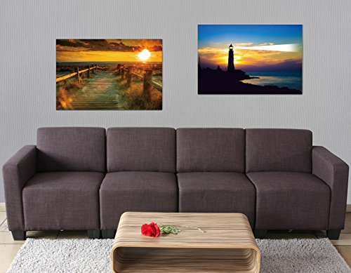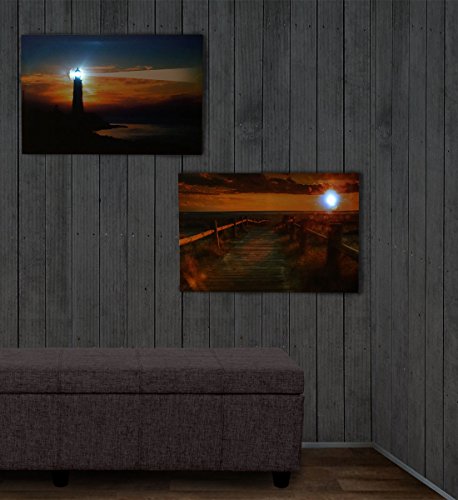 Mendler Set 2X Poster LED a Pile con Timer Legno con Stampa in Tessuto 60x40cm Mare
