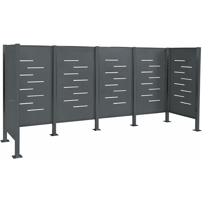 Recinzione frangivista bidoni box rifiuti spazzatura modello HWC-J55 acciaio zincato antracite versione 150x325x85cm Probabilmente conoscete già il problema: i bidoni della spazzatura davanti casa sono una presenza costante, ma esiste una soluzione semplice ed efficace per renderli più apprezzabili! Queste innovative recinzioni ti aiuteranno a nascondere i bidoni dei rifiuti dal campo visivo. Affinché la recinzione frangivista sia sempre stabile, si consiglia di utilizzare gli elementi di ancoraggio a terra forniti con la consegna. Proponiamo questo prodotto in diverse versioni. struttura stabile facile da installare per bidoni con capacità da 80L a 240L include la fornitura di 4 elementi per l'ancoraggio a terra per palo fissabile a terra con il cemento carico di neve 150 kg/m² resistenza al vento fino a 90km/h materiale: acciaio zincato consegna: 6x pannelli Spedizione in 5 pacchi separati (la consegna di tutti i colli può non avvenire nello stesso giorno) certificato standard