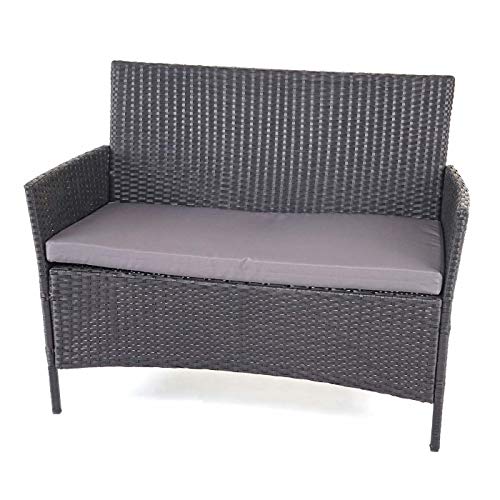Mendler Salottino da Esterno Giardino HWC-D82 polyrattan Nero con Cuscini Antracite