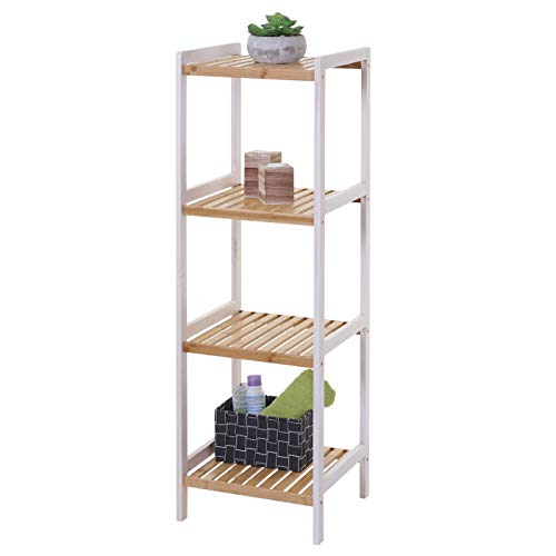Mendler Scaffale arredo bagno HWC-B55 legno di pino e bambù 4x ripiani