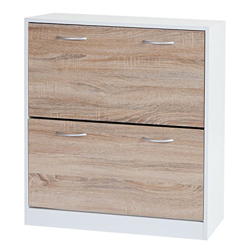 Mendler Scarpiera salvaspazio HWC-B10 2 Scomparti MDF 24x75x87cm Bianco Scomparti Rovere