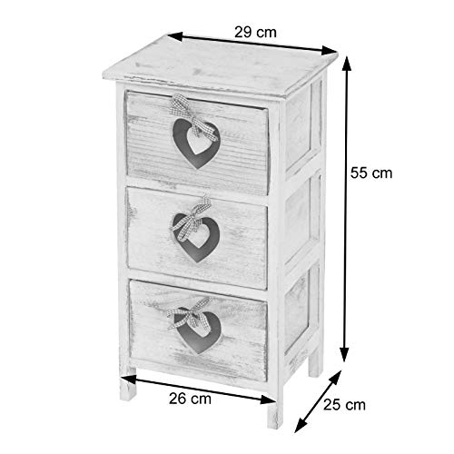 Mendler Serie Vintage cassettiera Comodino Forli Legno di paulonia Bianco 25x29x55cm 3 cassetti