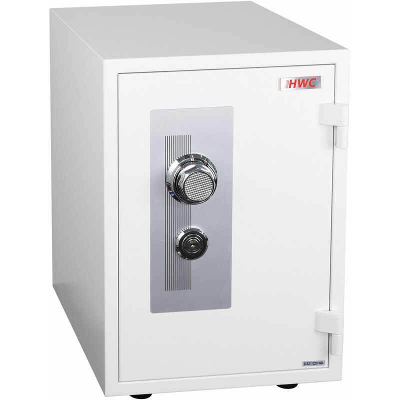 Merce non controllata da reso Cassaforte ignifuga (60 min) con serratura e combinazione numerica a 4 cifre modello HWC-L48 acciaio e cemento versione 20L 52x36x39cm colore BIANCO Questa cassaforte ignifuga ti offre la soluzione ideale per custodire in sicurezza i tuoi preziosi documenti e averi. Con un'elevata capacità (19, 20, 39, 48 litri a seconda della versione) questa cassaforte offre spazio sufficiente per i tuoi documenti più importanti. Lo sportello in acciaio della cassaforte è dotato di una robusta serratura a doppio chiavistello, che garantisce il massimo livello di sicurezza. I due robusti perni di chiusura in acciaio con un diametro di 1,6 cm assicurano che la cassaforte rimanga ben chiusa e impedisca l'accesso indesiderato. Per una maggiore sicurezza, la cassaforte ha una doppia sicurezza composta da una serratura e da un codice a 4 cifre. Per aprire la cassaforte servono sia la chiave che il codice. Se hai solo il codice o solo la chiave, la cassaforte non può essere