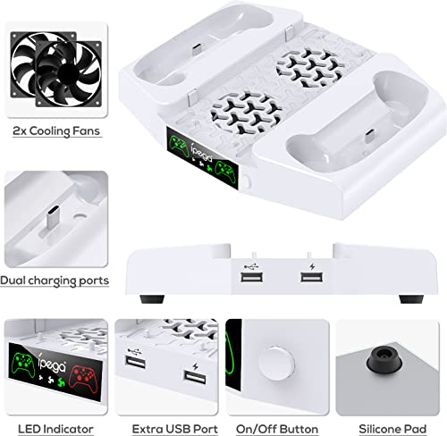 Supporto di raffreddamento 4 in 1: questa stazione di ricarica è appositamente progettata per console Xbox Series S, controller e cuffie originali. Il supporto per caricabatterie è dotato di 2 ventole di raffreddamento (3 marce regolabili), dock di ricarica a doppio controller, 1 supporto per cuffie e 2 porte USB. (Si prega di utilizzare alimentatore da 5 V/1,5-2 A per fornire corrente sufficiente. Non per console Xbox Series X e non include il pacchetto batteria)
