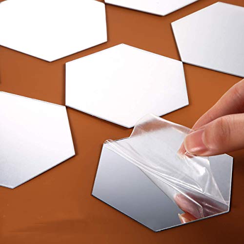 Mengger Specchio da Parete Adesivo Fogli autoadesivi Cerchio 48 Pezzi Esagono Specchi per la Decorazione Domestica Piastrelle Appiccicoso