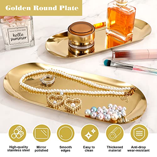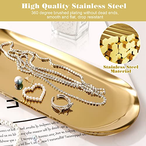 MengH-SHOP Vassoio Decorativa Piatto di Stoccaggio in Acciaio Inossidabile Ovale Organizzatore per Gioielli Cosmetici Candela Tè Snack, Oro