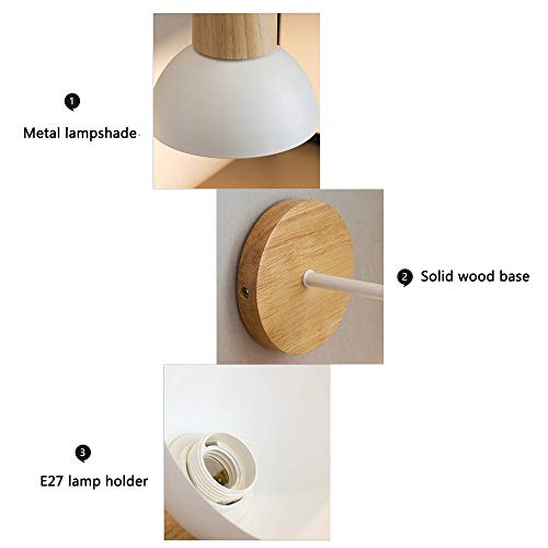 Mengjay E27 Applique Applique da interno design nordico moderno Applique da parete in ferro e legno Soggiorno studio camera da letto (Bianca)