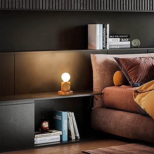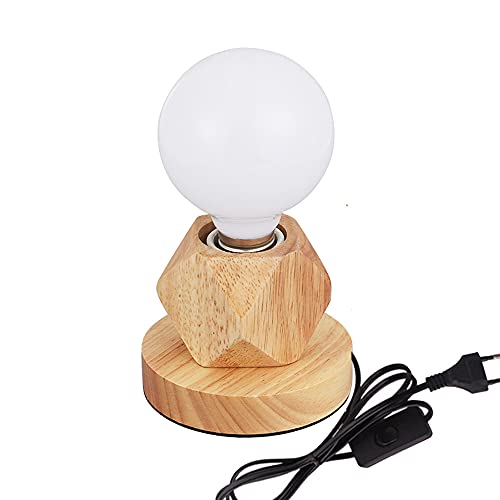 Mengjay Lampada da comodino in legno, E27 Lampada da Tavolo Notturna,luce da lettura vintage industriale,LED Lampada da Tavolo,adatta per soggiorno, studio e ufficio(Nessuna lampadina)