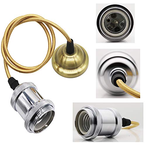 Mengjay E27 Lampada da soffitto Edison Rame Portalampada Luce Del Lampada Lampadario Holder Ombra Lampada a Sospensione Lampada Titolare Accessori Fai da te Con 1M Cable Luce pendente (Argento)