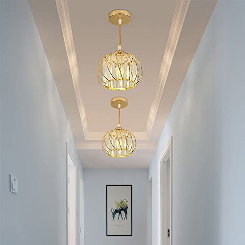 Mengjay Lampada a Sospensione Moderna in Cristallo,Mini Plafoniera Moderna da Incasso Rotonda,E27 Hanging Lampade in Cristallo per Cucina Sala da Pranzo Ingresso Corridoio Camera da Letto,D'oro