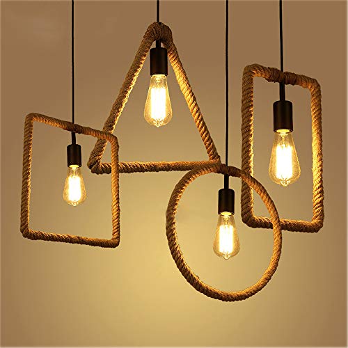 Mengjay Lampadario ragno corda di canapa/stile industriale retrò/soggiorno sala da pranzo bar balcone/lampade non includono lampadine(piazza)