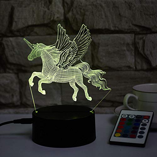 Mengjay Lampade 3D Illusione Ottica Luce Notturna, Lampada Led Da Tavolo Illuminazione Luce Di Notte 16 Colori Controllo Tattile Lampada Decorazione Da Comodino Con Cavo Usb, Unicorno A