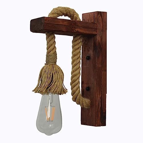 Mengjay Lampade da parete a led industriali Applique Lampade da parete in legno decorativo in corda di canapa per caffetteria Ristorante dell'hotel Lampada E27 Base Lampadina