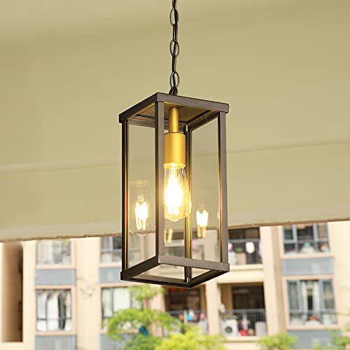 Mengjay Lanterna Esterno Pendente in Vetro Stile Rustico E27 impermeabile IP23 Lampadario Gazebo Balcone Cortile Lampada a sospensione Creativo regolabile Luce di sospensione del corridoio (Big)