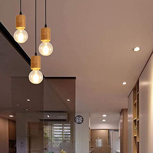 Mengjay E27 Retro Lampadario Lampada a Sospensione in Legno E27 Plafoniera Interni in Legno Lampadario Lampade a Sospensione per Bar,Ristorante,Studio,Cucina,Camera da letto (C)