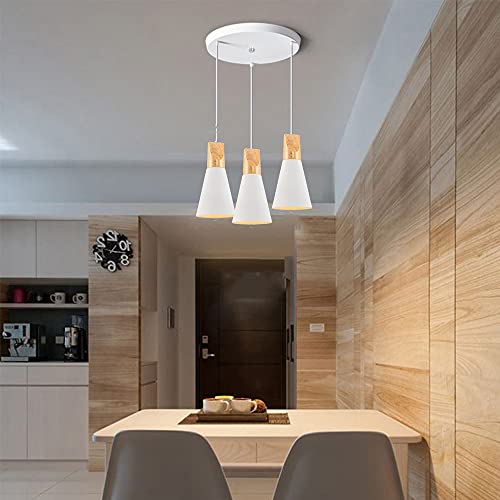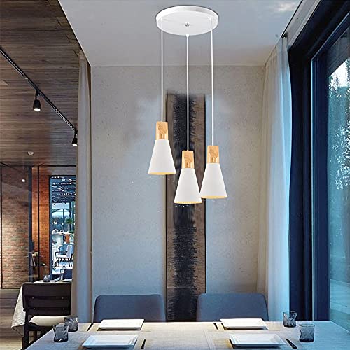 Mengjay Trade Lampadario Lampada a sospensione in legno e metallo lampade a sospensione industriale Deco Lampada lampadario a 3 luci di illuminazione lampada per Lounge Ristoranti,Bianca