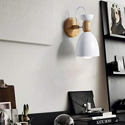 Mengjay E27 Vintage Applique da Parete Interno Retro Metallo Legno Lampada Muro Lampada da Parete Lampada Muro per Camera da Letto, Soggiorno, Bagno, Corridoio, Scale-(Bianco)