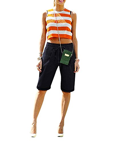 Mengmiao Donna Pantaloncini Bermuda Puro Colore Casual Comode Sciolto Taglie Forti Shorts Nero 3XL