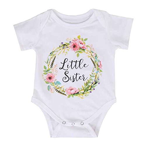 manica corta "sorella minore" e "sorella maggiore" top stampa della lettera, è molto adroable pagliaccetto del bambino con 3 bottoni a pressione sul fondo per una facile cambio di pannolino