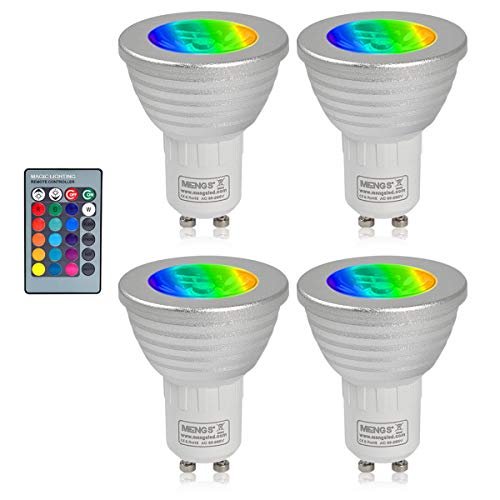 MENGS 4 pezzi Faretto GU10 3W RGB colorate Cambiare Lampadine a LED Dimmerabile Lampada a LED, Equivalenti a 20W, 180lm, AC 85V-265V, Con telecomando IR Luce a LED