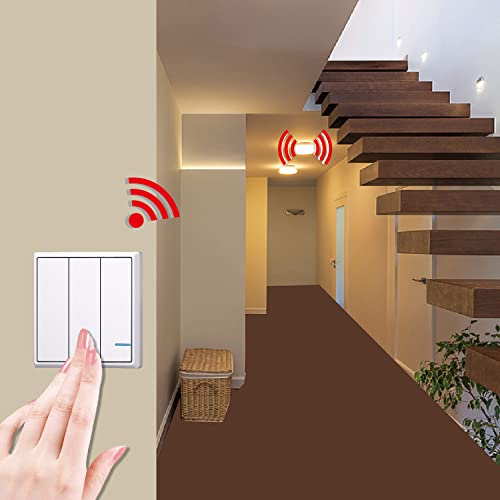Mengshen Kit Interruttore Luci Wireless, 1 Interruttore A Tre Bande + 3 Ricevitori, Nessun Cablaggio Richiesto, Facile Da Installare