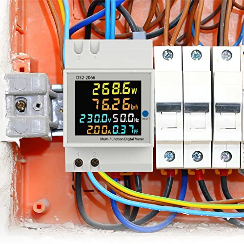 【 DIGITALE MULTIFUNZIONE】——Contatore energia elettrica può misurare contemporaneamente tensione alternata, corrente alternata, potenza attiva, fattore di potenza, frequenza ed energia elettrica.