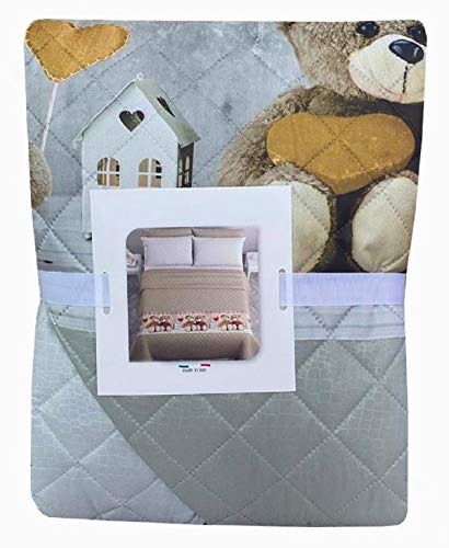 Menita shop Copriletto Trapuntino Matrimoniale Singolo Double Face Primaverile 1Posto 2Posti Teddy Bear Orsetti (Grigio Teddy, Singolo)