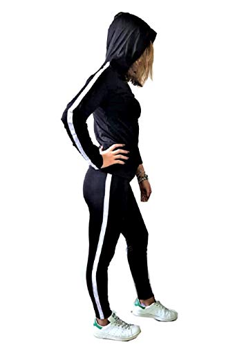 Menita Tuta Donna Completo Sportivo Fitness Palestra Felpa Cappuccio+Leggins Pantaloni (XL/XXL, Bianca ART01B)