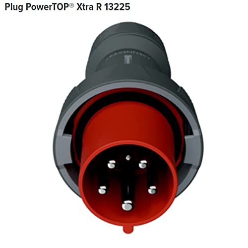 Mennekes 13225 Power top Xtra Plug con superficie gommata, protezione IP 67, 6 ore Earth posizione, 5 poli, corrente 125 a, 400 V, rosso