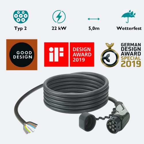 Mennekes, cavo per la ricarica Phoenix Contact eMobility, tipo 2 con estremità aperte, 3 fasi, 5 m, codice articolo 1627355