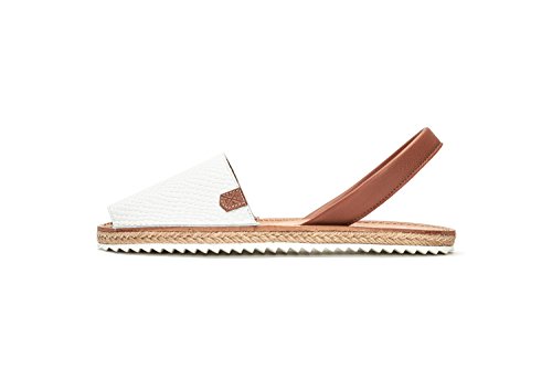 MENORQUINAS POPA RODAS Snake, Sandali Punta Aperta Donna, Bianco (White 0), 39 EU