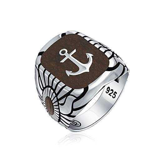 Mens Nautical Inciso Marrone Legno Incassato Grande Barca Anchor Signet Anello Per Uomo Solido 925 Sterling Silver Made In Turkey