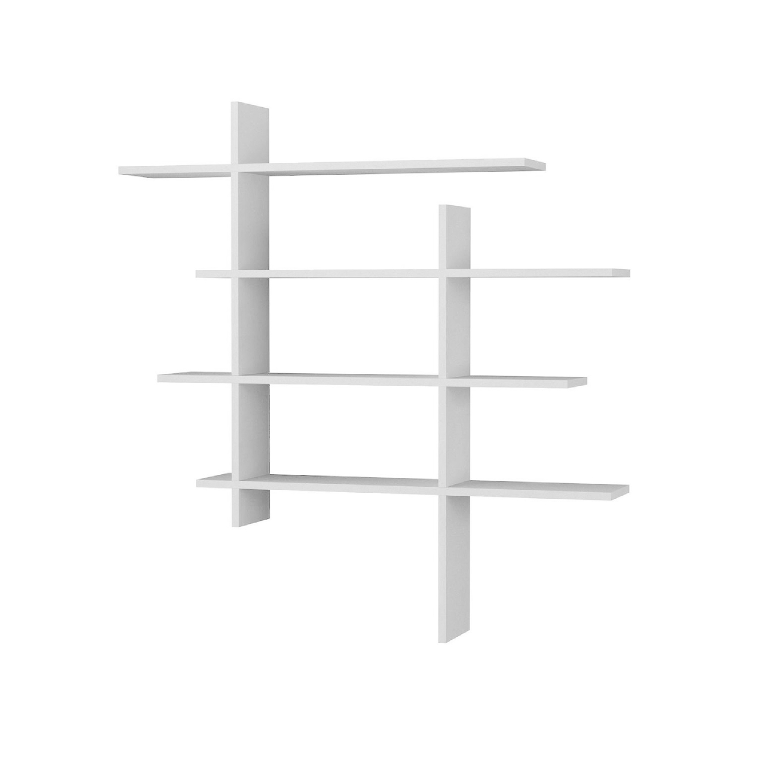 La mensola da parete è una composizione di elementi di appoggio per libri, oggettistica e decorazioni. Ha un design davvero moderno che permette anche di sfruttarne appieno tutta la sua funzionalità. Perfetta da utilizzare in casa o in ufficio. La composizione comprende 4 mensole in truciolato melaminico di qualità E1 con bande laterali da 0,6-0,8 mm, ciascuna ha una portata massima di 7 kg, per un totale di 28 kg. Dimensione: 115x115x22 cm.