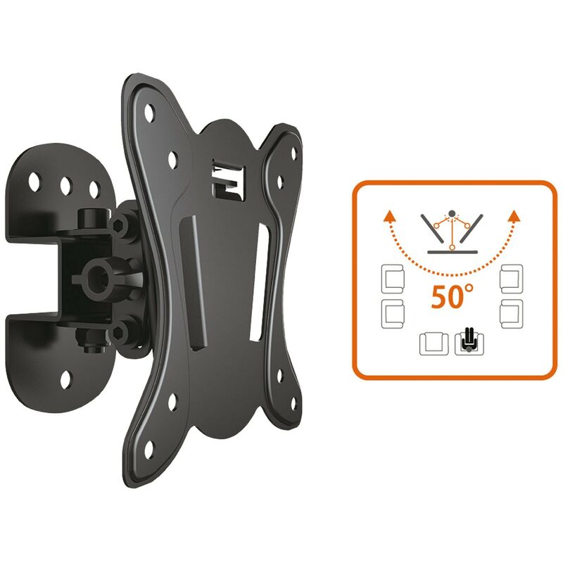 Supporto a parete orientabile per schermo 13 a 28 fino a 20 Kg Distanza TV/parete 7,5cm. - Rotazione orizzontale ±50° - Inclinazione verticale ±15° Dimensione supporto 6,5x10,8 cm