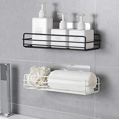 Mensola Adesiva per Bagno a Parete, Senza Fori, per Doccia e Cucina, Cremagliere della Cucina, Doccia Organizzatori (2 Pezzi, Bianco)