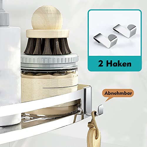 Mensola per Bagno, Mensola per Doccia Senza Perforazione, Mensola per Doccia Sospesa per Posizionare gel Doccia, Shampoo, Argento