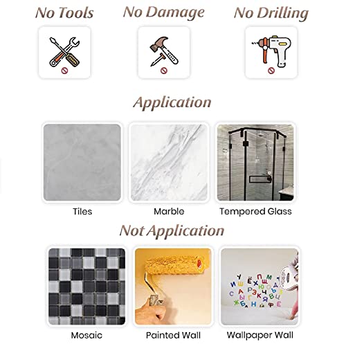 Mensola per doccia senza foratura: montaggio semplice e veloce. Pulire la parete liscia e asciugarla, staccare il cuscinetto autoadesivo sul retro della mensola della doccia, incollarlo su una parete liscia e premere per alcuni secondi, non adatto per carta da parati o pareti dipinte. Senza forare, senza danneggiare le superfici.