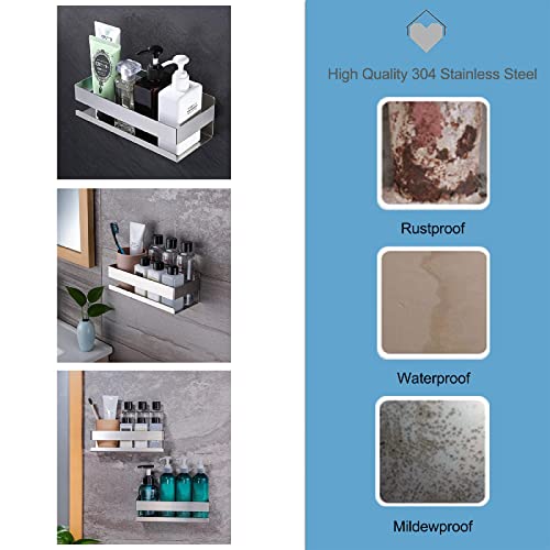 Materiale di alta qualità: il ripiano per doccia senza fori in acciaio inox è realizzato in acciaio inox, antiruggine e facile da pulire, durevole, finitura opaca. I bordi sono finemente levigati, non feriscono le mani, si prega di utilizzarlo con fiducia. Adatto per cucina e bagno.