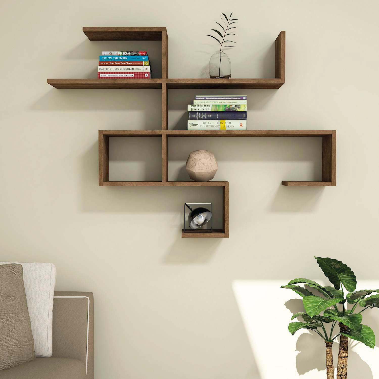 In agglomerato noce. Kit di montaggio incluso. Ideale per la zona giorno, notte e ufficio. Facile da pulire, facile da montare