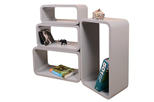 Mensola Da Muro Libreria Scaffale Vari Colori Retrò Cubi Moderno LO01 (Grigio)