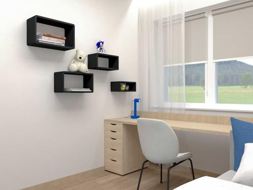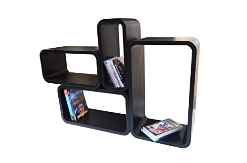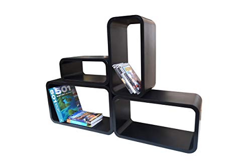 Mensola Da Muro Libreria Scaffale Vari Colori Retrò Cubi Moderno LO01 (Nero)
