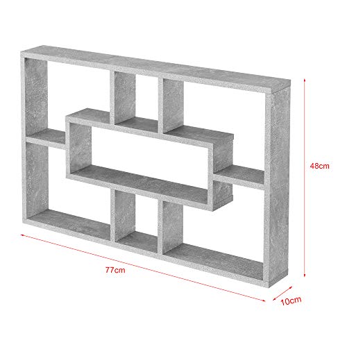 Mensola da Parete a Forma Rettangolare con 7 Scomparti 77 x 10 x 48 cm Scaffale Pensile con Ripiani Portaoggetti Libreria - Effetto Cemento
